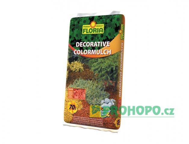 FLORIA Dekorační mulč je určený k mulčování záhonů kolem květin, keřů a okrasných stromů. Působí velmi dekorativně. Zabraňuje vysychání půdy tj. udržuje vlhkost půdy, čímž šetří vodu, zabraňuje erozi u výsadeb na svažitých pozemcích či držuje schůdnost pěšin i za deštivého počasí. Dále působí humusotvorně a zabraňuje růstu plevelů. Díky své struktuře zaručuje dobré provzdušňování půdy. V zimě chrání kořenový bal před promrznutím (růže, stromy, keře). Je ideální pro půdokryvné pokrytí půdy na záhonech, kde je vyžadován mimo jiné velmi líbívý vzhled, dále také pro použití k výzdobě interiérů. Barevný mulč z dřevních štěpek má delší trvanlivost o cca 30 %, než klasická dekorační kůra.