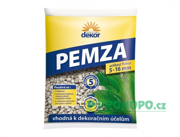 Pemza je přírodní materiál, vzniklý vulkanickou činností v dávné minulosti. Její neobvyklá struktura vzniká současným prudkým poklesem okolní teploty a tlaku v okamžiku, kdy je hornina ze sopky vyvržena do vzduchu nebo do vody. Bubliny vulkanických plynů tak zůstanou v hornině uvězněny a tvoří podstatnou část jejího objemu. Díky tomu je hornina lehká a často i plave. Pro běžné použití je pemza drcena na požadovanou frakci. Drcená pemza je lehká, porézní, vzdušná. Vzhledem k těmto vlastnostem se používá k vylehčení půdy při pěstování zvláště kaktusů, cykasů a jiných tropických rostlin. Větší frakce (5–16 mm) je velmi dekorativní, a to jak při použití v interiéru, tak i v exteriéru. Pemza může mít bílou, hnědou popř. jinou barvu, což záleží na tom, v jaké se nachází oblasti. Barevné rozdíly však nijak neovlivňují její charakter a použití.