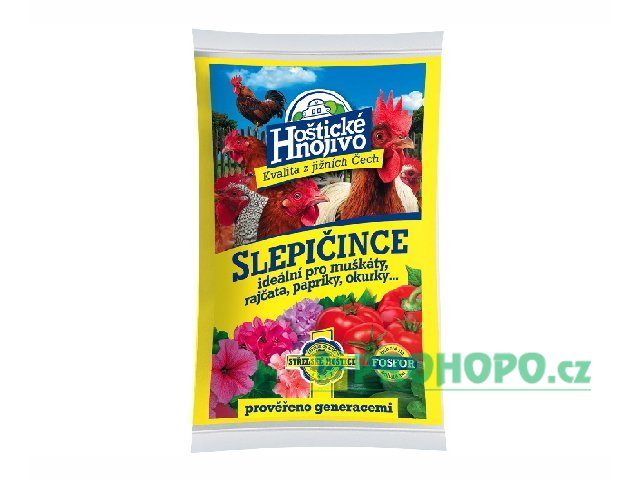 Hoštické hnojivo SLEPIČINCE je přírodní produkt obsahující fermentovaný slepičí trus. Pro vysoký obsah fosforu je po staletí využíván při pěstování okrasných rostlin, ale i ovoce a zeleniny. Příznivě působí na bohatou násadu květů a při pěstování ovoce a zeleniny přináší velkou úrodu. Hoštické hnojivo SLEPIČINCE je určeno k širokému užití jak v zahradě, tak i při pěstování okrasných rostlin v truhlících a v jiných nádobách. Je rovněž vhodné k základnímu vyhnojení půdy buď na jaře, nebo při její podzimní přípravě.