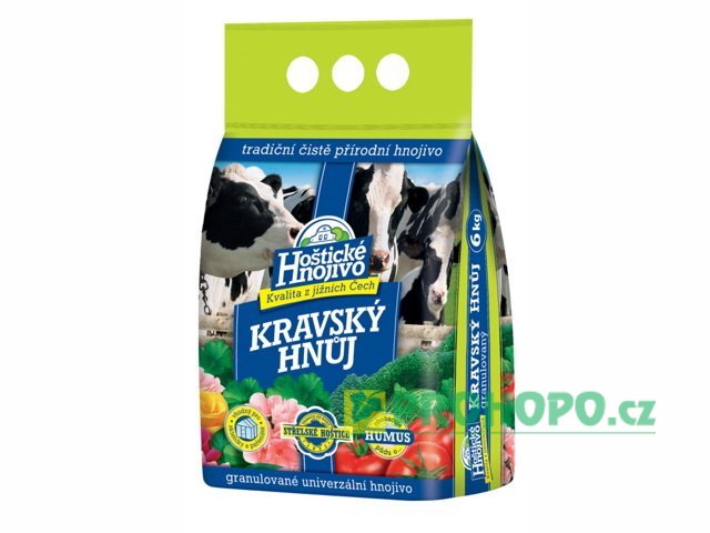 Hoštický kravský hnůj je čistě přírodní – organické – hnojivo. Hnojivo obsahuje organické látky a základní živiny (N, P, K, Ca a Mg), ale i stopové prvky např. (Fe, Mn, Mo, Zn, Cu). Hnůj přirozeně zvyšuje podíl humusu v půdě a přispívá k vyšší úrodnosti. Hoštický kravský hnůj se obzvláště hodí ke hnojení zeleniny např. celeru, kapusty, zelí, květáku, plodové zeleniny (rajčat, paprik, okurek…), ale i okrasných zahradních rostlin (např. před výsadbou konifer).