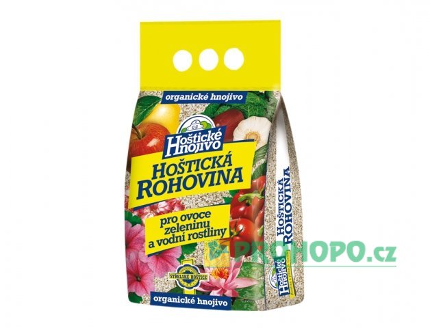 Organická hnojiva, mezi která Hoštická rohovina patří, jsou produkty z přírody pro přírodu. Hoštická rohovina je dlouhodobě působící a vysoce účinné hnojivo, vyrobené ze zdravé rohoviny, která je významným zdrojem dusíku. Tento ekologický produkt je také důležitým stavebním prvkem řady hnojiv ORGAMIN (BIOMIN). Hoštická rohovina je přírodní organické hnojivo, které obsahuje 14 % organicky vázaného dusíku a ve stopovém množství i další důležité živiny. Cenou vlastností tohoto hnojiva je pozvolné uvolňování dusíku a to po dobu až 6 měsíců, aniž by docházelo ke stresům z přehnojení nebo nedostatečné výživy rostlin touto živinou.