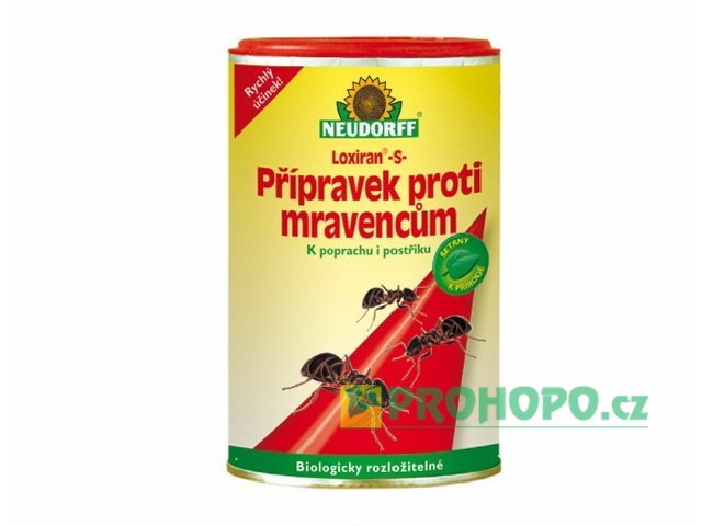 Loxiran S německé firmy Neudorff je biologicky odbouratelný insekticidní přípravek ve formě granulované návnady určený k poprachu nebo postřiku k odstranění obtížných mravenců na cestách a jiných zpevněných nebo vydlážděných plochách, teresách apod. Neobsahuje umělé chemikálie, ale pouze účinné látky přírodního původu, proto po aplikaci nebrání volnému pohybu lidí i zvířat po ošetřené ploše. Tyto přírodní účinné látky působí spolehlivě a cíleně proti mravencům ve vnitřních i vnějších prostorách přičemž chrání životní prostředí.