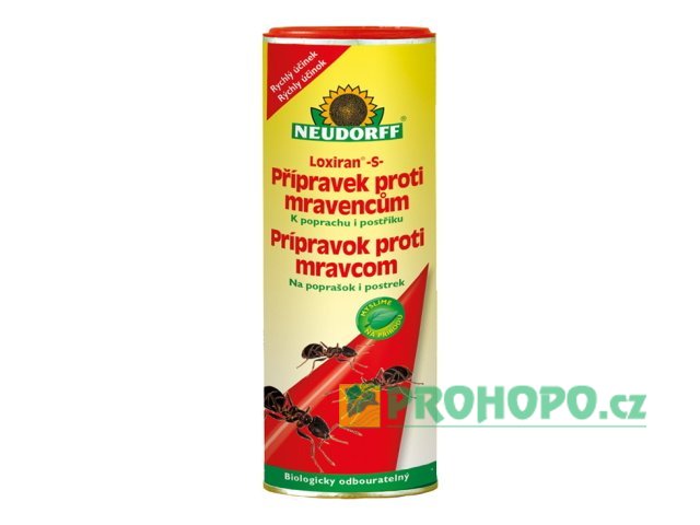 Loxiran S německé firmy Neudorff je biologicky odbouratelný insekticidní přípravek ve formě granulované návnady určený k poprachu nebo postřiku k odstranění obtížných mravenců na cestách a jiných zpevněných nebo vydlážděných plochách, teresách apod. Neobsahuje umělé chemikálie, ale pouze účinné látky přírodního původu, proto po aplikaci nebrání volnému pohybu lidí i zvířat po ošetřené ploše. Tyto přírodní účinné látky působí spolehlivě a cíleně proti mravencům ve vnitřních i vnějších prostorách přičemž chrání životní prostředí.