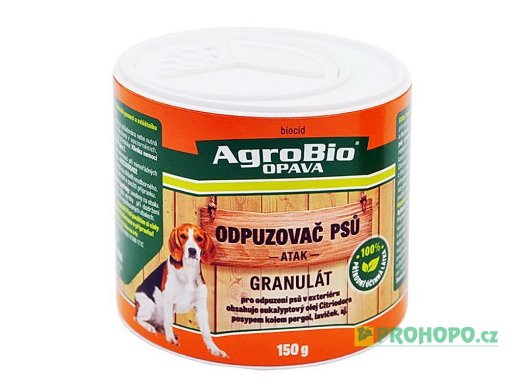 ATAK Odpuzovač psů granulát pomáhá změnit chování zvířat - psi se zdržují v dostatečné vzdálenosti od míst, kde to není žádoucí např. skalek, zahrad apod., eliminuje tedy případné poškození nádob a kontejnerů na odpadky, poškozených trávníků a květinových masívů, jakož i skvrn po moči psů na zdích, zídkách a sloupech. Pro člověka se vyznačuje příjemnou vůní, ale pro psi je nesnesitelný, působí přes čichové smysly zvířat.