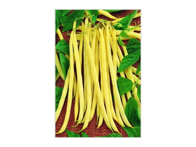 špičatý. Lusk je žlutý, mírně prohnutý, dlouhý 10 – 12 cm, bez