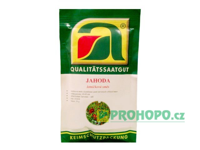 Směs Jahoda je květinovým porostem, obsahující téměř 14 druhů květin včetně vlčího máku (Papaver) a dále např. Dvouzubec (Bidens), Krásenku (Cosmos), Ostálku (Zinnia), Len (Linum), Slézovec (Lavatera) apod. Vyniká především svou barevností jasně červených a bílých květů. Směs představuje krásný požitek barev pro milovníky červené a bílé barvy s kapkou zelené až do pozdního léta.