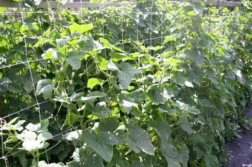veškeré popínavé zeleniny, jako jsou okurky, fazole, hrách, rajčata aj. Je