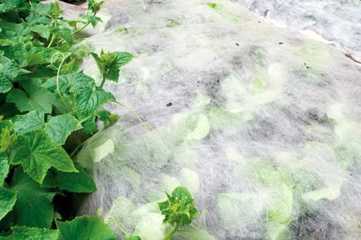 Bílá netkaná textilie je určená k zakrývání rostlin. Je vyrobená technologií SPUN-BOND, podle které se dnes připravuje asi 46 % vlákenných vrstev pro netkané textilie. Výroba spočívá v tavení granulátu, zvlákňování přes trysky a rozkládání hotových filamentů následně vytvářející plošnou netkanou textilii. Odpadá tak pro ostatní textilní útvary charakteristická prvotní výroba vláken a jejich konverze na plošný útvar až v dalším kroku. Jako základní vlákno se nejčastěji používá 100 % polypropylen, jenž je odolný proti slunečnímu záření, napadení plísněmi, různými mikroorganismy, houbami či hmyzem. Vyznačuje se malou roztažností, hladkým povrchem a vysokou odolností proti otěru.