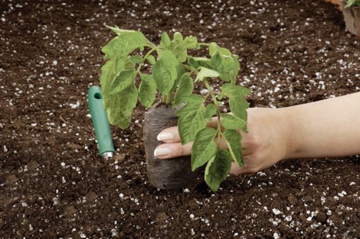 Jednoduché a bezpečné přesazení mladé sazenice do půdy s plně vytvořeným kořenovým systémem.
