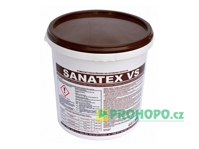SANATEX VS je pomocný prostředek k ochraně ran po řezu nebo jiném mechanickém poškození ovocných, okrasných a lesních dřevin ve formě pasty hnědé barvy charakteristického zápachu. Je mísitelný s vodou, po zaschnutí je však již ve vodě nerozpustný. Je velmi trvanlivý, neškodný jehličnanům i listnáčům. Nepoškozuje ani mladé nevyzrálé letorosty. SANATEX VS má tixotropní vlastnosti, které častečně snižují stékavost. SANATEX VS je obzvláště vhodný do lokalit, kde je třeba často provádět ochranu dřevin, které byli poškozeny okusem.
