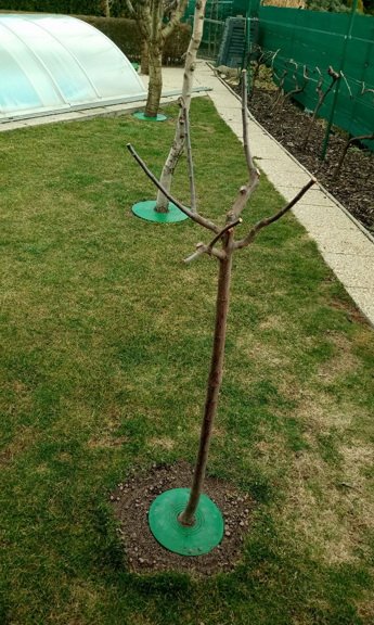 Proti nežádoucímu vzrustu trav a plevelů kolem kmenu rostlin.