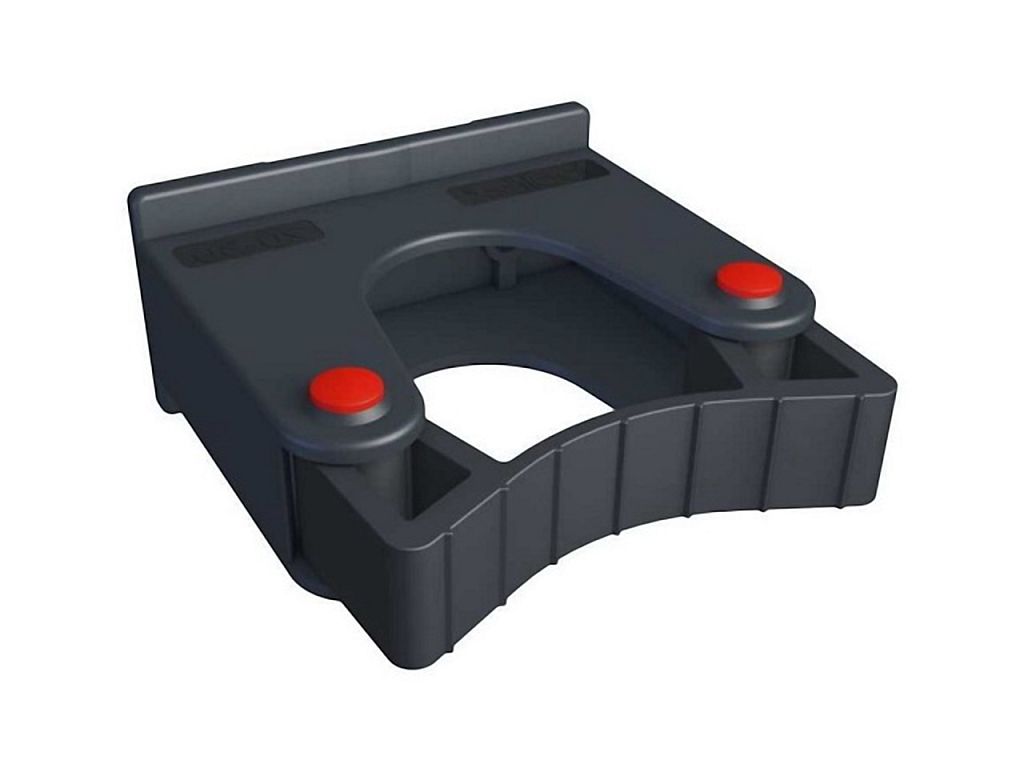 Hlavní čast držáku vyrobena z černě barveného ABS plastu (Akrylonitril­butadienstyren) – amorfního termoplastického průmyslového kopolymeru, odolného vůči mechanickému poškození, který je tuhý, houževnatý, dle typu odolný proti nízkým i vysokým teplotám, málo nasákavý, zdravotně nezávadný. Je také odolný vůči kyselinám, hydroxidům, uhlovodíkům, olejům, tukům.