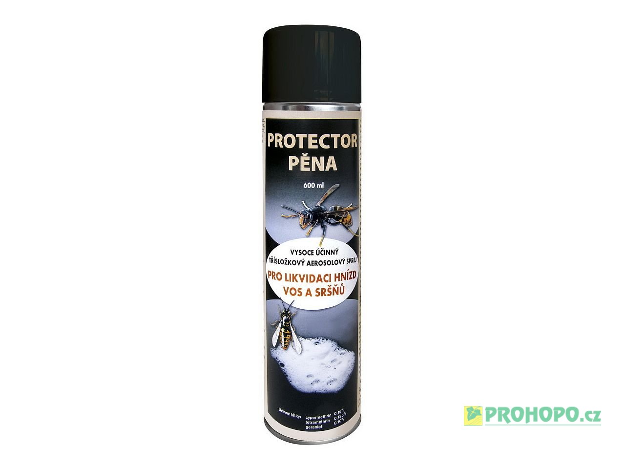 Protector pěna obsahuje tři účinné látky a to cypermethrin, tetramethrin a