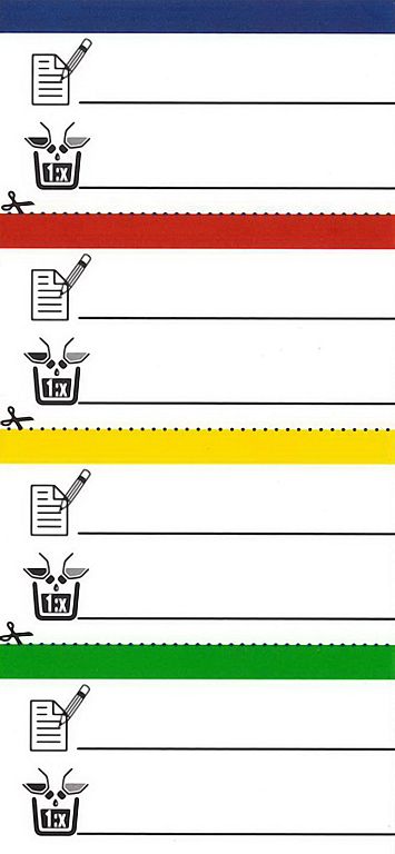 „vychytávka“. Štítky mají barevný pásek, což lze využít