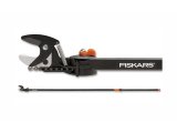 Univerzální zahradní nůžky Fiskars představují víceúčelové nástroje s vynikajícím dosahem do korun stromů a hustých keřů. Můžeme s nimi stříhat ve výškách bez potřeby žebříku nebo naopak těsně u země, aniž bysme se museli sklánět. Velkou stříhací sílu vyvineme pouhým posunem oranžové rukojeti nebo oranžové kuličky, pokud stříháme ve velké výšce. Díky nastavitelnému úhlu stříhací hlavy a lehké konstrukci je práce s univerzálními zahradními nůžkami Fiskars vždy rychlá, snadná a bezpečná.