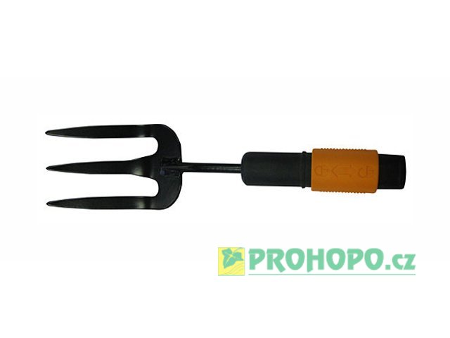 Nasuneme nový nástavec na mechanismus konce násady Fiskars QuikFit™ a jakmile uslyšíme cvaknutí, je spojení pevné a můžeme začít pracovat.