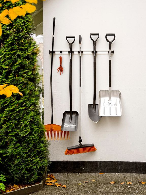 Použítí s lištou Toolflex Original (není součástí tohoto balení), umožňující posouvání jednotlivých držáků nebo háčků dle aktuální potřeby.